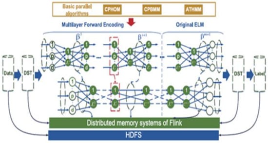 The authors in [56] proposed a parallel approach termed the H-ELM (hierarchical extreme learning machine) algorithm based on GPU and Flink which is an in-memory cluster computing platform. Figure 7 shows the architecture and workflow of H-ELM. Flink uses Java interfaces to communicate with the GPU. The GFlink architecture is shown in Figure 8.