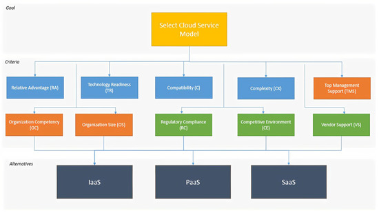 - Lee, Y.-C.; Tang, H.N.; Sugumaran, V.D. A deployment model for cloud computing using the analytic hierarchy process and BCOR analysis. In Proceedings of the 18th Americas Conference on Information Systems 2012, AMCIS 2012, Seattle, WA, USA, 9–12 August 2012. [Google Scholar]