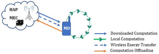 Figure 1 depicts the system model containing one MD, either computing a task locally or transmitting data to MEC and harvesting energy from HAP attached to MEC, along with downloading the computational data from MES.