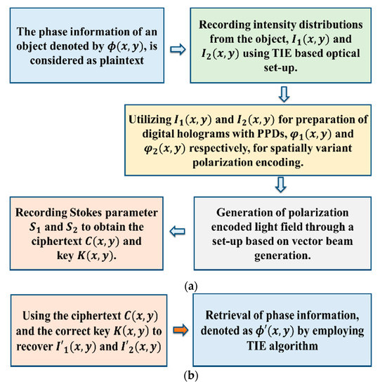 (a) Flowchart of proposed encryption and (b) decryption process.