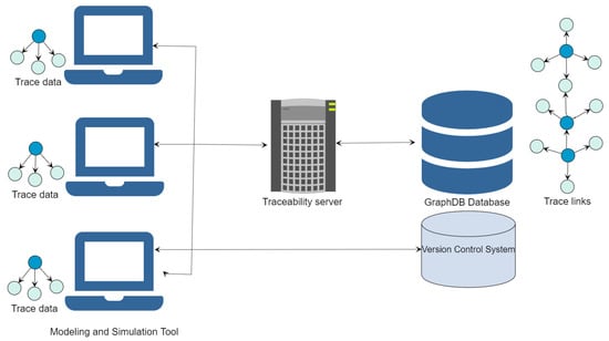 - Version Control System—The Git Version Control System is used as a central artifact management system that interacts with the modeling tools by establishing a unique URI for artifacts that are evolved by different users. The traceability links are unique as they are based on the Git commit hash. This allows multiple users to work on the project and maintain traceability links simultaneously.