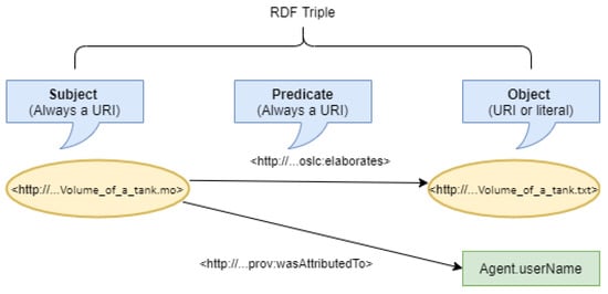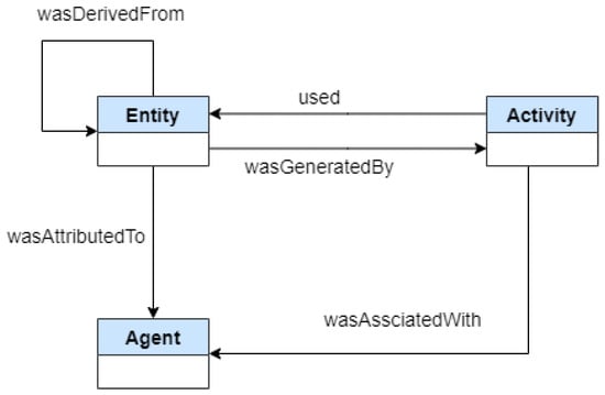 In addition, relations are defined that describe the connection between entities, activities, and agents. In the context of traceability, the traceability data consist of triples made up of subject, predicate, and object, where subject and object are either an entity, activity, or agent. The predicate is either an OSLC [] or PROV [] relationship type.