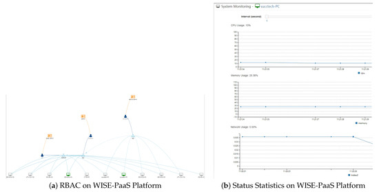 29]. SSO provides authentication, access control capabilities and protection mechanisms to prevent malicious attempts. Tenants can centrally manage users, assign user management rights and accessible cloud resource permissions. Its characteristics are as follows: (1) It is convenient for users to gain access of all authorized applications only with a single account, and get an improved application experience; (2) it is also convenient for administrators to maintain a set of unified user accounts only with a single account, and optimize management and reduce system vulnerabilities; (3) finally, it is convenient for developers. Advantech WISE-PaaS improves the development efficiency by integrating SSO without the additional development of an account management system. After the user login with the account password, its token will be returned. The certificate provided by the platform adopts the JSON web token (JWT) open standard (RFC 7519), which defines a simple and independent way to transfer user information as a JSON object safely with a complete Restful API. Once the user logs in, each subsequent request will bring the token in the header of request, and the back-end server will allow the user to access the paths, services and resources allowed by the token after receiving the request. There are three types of roles: super admin, admin and device admin. Super admin has the authority of all accounts to manage and create accounts for roles of admin and device admin. Admin is the administrator, which can manage and create a device admin account; that is, to create device groups, add and delete devices, power on and off of devices, device status monitoring, sensor data acquisition, and data reporting rule settings. Device admin is a general device management account, which can manage the device group assigned by the admin, including power on and off of the device, device status monitoring, sensor data acquisition, data reporting rule setting and other functions.