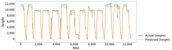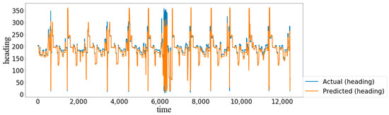 After the track data which deviates from the route in the data set is removed, the remaining data is divided into a training set and test set, which take up respectively 70% and 30% of the set, and the training set is added into the Bi-LSTM network for training. The trained model predicts the flight information of the aircraft in the test set. The predicted sequence values are compared with the real sequence values. The prediction results of height, speed and heading are shown in Figure 5, Figure 6 and Figure 7.