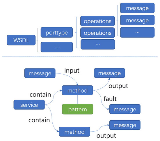 Finally, definition, the root element in the WSDL document is reflected as one whole service node in the graph, and the web service described by a WSDL document is embodied as a service entity in the knowledge graph. The service knowledge graph can integrate the information in a large number of web services’ WSDL documents.