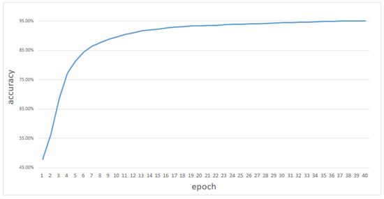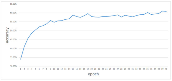When we calculate the accuracy rate, as long as the five tags with the highest probability of the output contain the correct tag, the prediction is considered correct. During the model training process, the accuracy rate changes, as shown in the Figure 9.