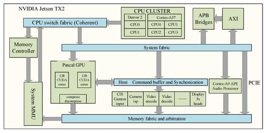 In addition to common GPUs, embedded GPUs have become the other development platforms because of the limits of applications of common GPUs in mobile scenarios. Taking the NVIDIA Jetson TX2 as an example, Figure 4 shows the structure of the TX2. The GPU core in Jetson TX2 is small and have low complexity, enough for network inference but hard to train DNNs on this platform. Jetson TX2 can afford 1.3 TFLOPS (Tera Floating-point operations per second) with single precision floating point data.