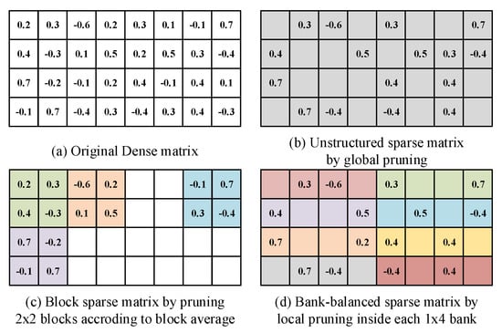- Cao, S.; Zhang, C.; Yao, Z.; Xiao, W.; Nie, L.; Zhan, D.; Liu, Y.; Wu, M.; Zhang, L. Efficient and effective sparse LSTM on fpga with bank-balanced sparsity. In Proceedings of the 2019 ACM/SIGDA International Symposium on Field-Programmable Gate Arrays, Seaside, CA, USA, 24–26 February 2019; pp. 63–72. [Google Scholar]
