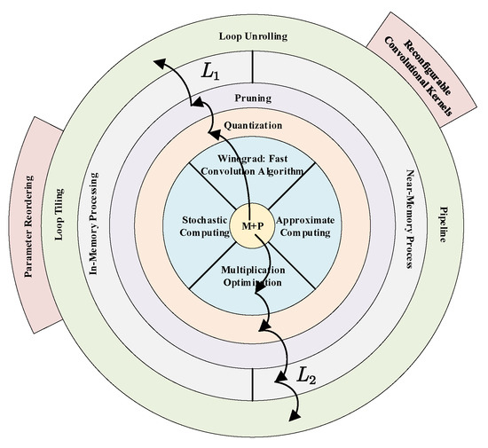 The rising performance demands are expected to outpace the growth in resource budgets; hence, over provisioning of resources alone will not solve the conundrum that awaits the computing industry in the near future [37]. Approximate computing (AC) has become a promising method for solving this problem. In [38], the authors propose an AC strategy that trains a neural network to mimic an approximable code region. This method enables the compiler to invoke a low-power NPU to replace the original code. In [39], the researchers present a technique to accelerate approximable code regions on limited-precision analog hardware by a NN approach. ApproxANN [40] considers the impact of each neuron on the output quantity and energy consumption and obtains a criticality ranking, whereas unimportant neurons have higher priorities for approximation. Then, the authors use iterative heuristics to decide the number of neurons to be approximated and the approximation strategy. A method is proposed in [41] to transform any given neural network to an approximate neural network (AxNN) and a quality-configurable neuromorphic processing engine (qcNPE) to execute the AxNNs. Xu et al. adopt iterative training in the quality control of approximate computing. They propose an optimization framework to coordinate the training of the classifier and accelerator with a judicious selection of training data [42]. In [43], a new method of approximate computation is introduced, namely, dynamic-voltage-accuracy-frequency-scaling (DVAFS), which can dynamically balance the energy and accuracy. DVAFS reuses inactive arithmetic cells under reduced precision to improve the energy efficiency.