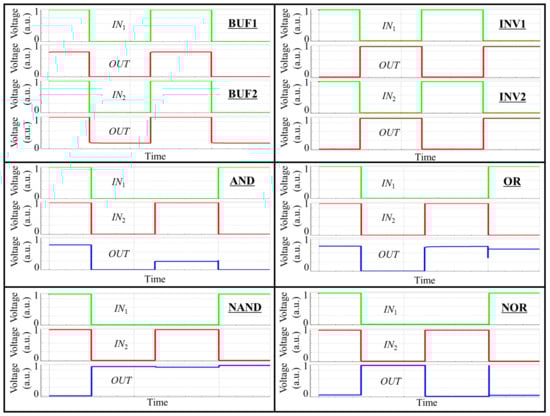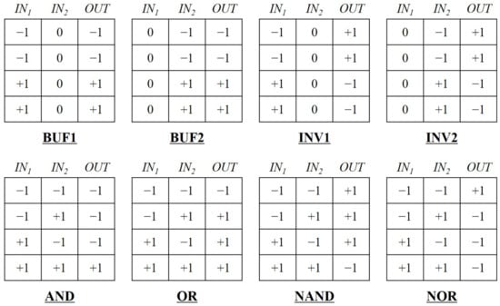 Truth tables for target logic gates. While BUF1 and INV1 are buffer and inverter with an input of , BUF2 and INV2 are buffer and inverter with an input of .