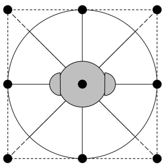 The Head-Related Transfer Function (HRTF) is a filter defined on a spherical area that describes how the shape of the listener’s head, torso, and ears affects incoming sound from all directions []. When sound hits the listener, the size and shape of the head, ears and ear canal, the density of the head, and the size and shape of the nasal and oral cavity all alter the sound and affect the way the sound is perceived, raising some frequencies and attenuating others. Therefore, the time difference between the two ears, the level difference between the two ears, and the interaction between sound and personal body anatomy are important for HRTF calculation. In this way, the ordinary audio is converted to 3D sound. Although binaural synthesis with HRTFs has been implemented in real-time applications, only a few commercialized applications utilize it. Limited research exists on the differences between audio systems that use HRTF, compared to systems that do not []. Systems that do not use HRTF in their binaural synthesis instead often use a simplified interaural intensity difference (IID) []. This simplified IID alters the amplitude equally for all frequencies, relative to orientation and distance from the audio source to both ears of the listener. These systems do not utilize any audio cues for vertical placement and will therefore be referred to as “panning systems”, while systems that use HRTF do have cues for vertical placement, and will therefore be referred to as “3D audio systems”. Three-dimensional audio systems will show a difference in human localization performance compared to a panning system, because these systems utilize more precise spatial audio cues than panning systems. These results suggest that 3D audio systems are better than panning systems in terms of precision, speed, and navigation, in an audio-exclusive virtual environment []. Additionally, the non-individualized HRTF filters currently in use may lack the published accuracy [], but a better-personalized HRTF will increase the accuracy. Most of the virtual auditory displays employ generic or non-individualized HRTF filters that lead to a decreased sound localization accuracy [].