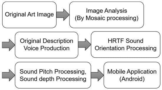 According to the 2020 data on visual impairment from the WHO, globally, the number of people of all ages visually impaired is estimated to be 285 million, of whom 39 million are blind []. People with visual impairments are interested in visiting museums and enjoying visual art []. Although many museums have improved the accessibility of their exhibitions and artworks through specialized tours and the access to tactile representations of artworks [,,], it is still not enough to meet the needs of the visually impaired [].