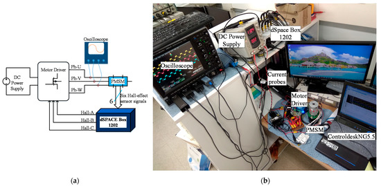 Figure 10 shows the experimental scheme and the setup for the validation of the FTC system. The FTC algorithm for the Hall-effect sensor failures is implemented into the dSPACE box 1202. Six Hall-effect sensor signals from the motor are fed directly to the dSPACE box input channels, where the algorithm continuously search for sensor faults.