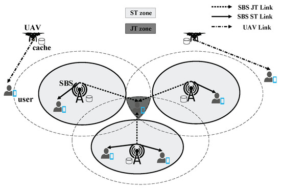 As mentioned in Section 3, the SBSs act as the major caching servers for content delivery, where a user will turn to UAVs for requested content only when it cannot obtain the content from SBSs.