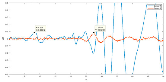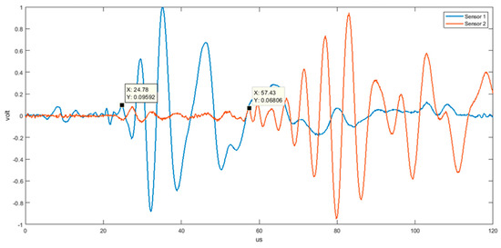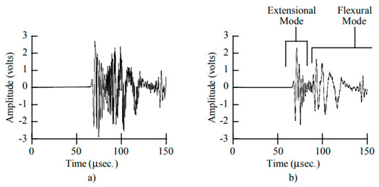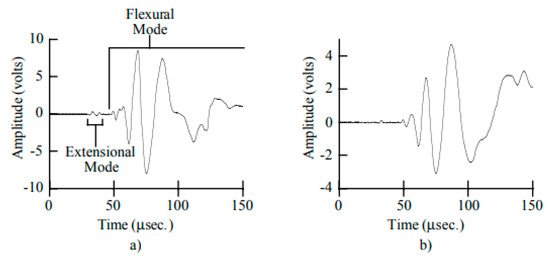 Again, this value is in good agreement with theoretical values for the S0 mode in the high-frequency range, as reported in Figure 2. In the later part of these two signals, we can observe more remarkable differences due to dispersive characteristics.