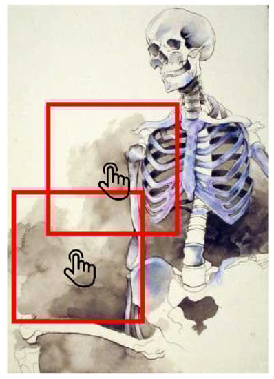 Figure 7. Example of gtPatch capturing. Regions selected by mechanical turks help recognize the artistic media of an artwork. Turks select at most three 256 × 256 -size of patches from a single artwork image.