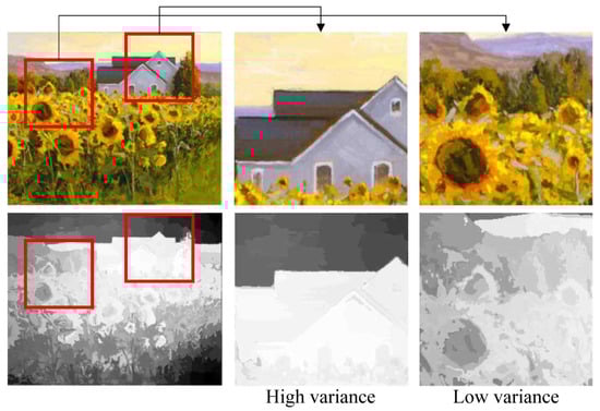 Figure 10. Examples of patches with identical saliency scores (0.67) but different variance values (0.16 and 0.33, respectively). The patch with high variance has a smaller probability of containing MTS than a patch with low variance.