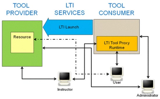 Therefore, the standard to meet the expectations is the Learning Tools Interoperability (LTI) specification of IMS Global Learning Consortium [29]. The principal concept of LTI is to establish a standard method of integrating rich learning applications (often remotely hosted and provided through third-party services) with platforms such as learning management systems, portals, or other educational environments. In LTI, these learning applications are called Tools (delivered by Tool Providers) and the LMS, or platforms, are called Tool Consumers (see an overview of LTI in Figure 1).