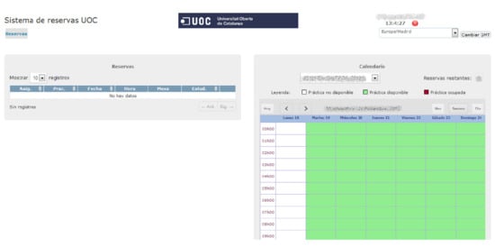 Finally, as far as the experiment management system is concerned, it complements the booking system. Before the reservation date arrives, the booking system sends all of the information related to the next reservation to the laboratory computer, guaranteeing correct access to the resources during the students’ working session: