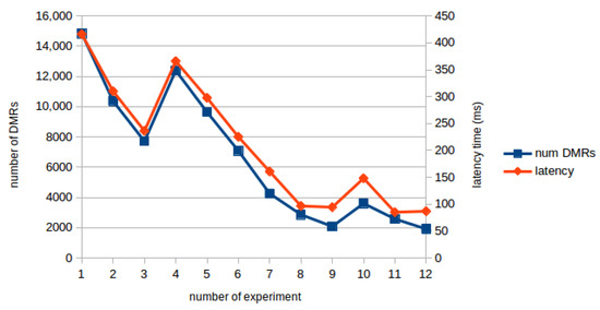 Figure 8 shows the communication delay in milliseconds and the number of DMRs found in each experiment. This figure shows a clear correlation between the two variables, showing that the communication delay corresponds to the transmission of the results from the server to the client. In fact, the number of DMRs identified is the main responsible for the increase of communication delay. Nevertheless, even in cases of many DMRs the communication delay time is no longer than half a second.