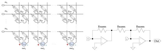 Since the IBM supercomputer Deep Blue was able to defeat the world chess champion Garry Kasparov in 1997 [], the artificial intelligence (AI) field has experienced a dramatic boost. Such an acquired momentum can be attributed to two main reasons. First, the exponential increase in the last decades of the computational power exhibited by the computer systems, according to the Moore’s Law. Second, the vast amount of data available thanks to internet and social media as well as, more recently, to the Internet of things (IoT). This ideal situation paved the way toward training deep neural networks (DNNs), which nowadays is the dominant paradigm in the AI field [], in reasonable time with high accuracies. In fact, one of the most important accomplishments performed by DNN systems took place in 2016 when Google AlphaGo defeated the Go world champion Lee Sedol []. However, pure software DNNs executed in supercomputers with thousands of CPU/GPUs suffer from an important main handicap: the energy consumption []. In particular, the need of frequent transferences of data between the memory unit and the processing unit limits the energy efficiency drastically due to the a memory bottleneck inherent to the von Neumann architecture []. In order to overcome this issue, companies like IBM and Intel have developed brain-inspired computing chips such as TrueNorth and Loihi [,], respectively, which dramatically reduce the energy consumption by using non-von Neumann architectures. Nowadays, the most promising of the novel non-von Neumann computing paradigms relies on the idea of in-memory computing, in which calculations are carried out in situ where the data are stored [], therefore suppressing the extremely energy- and time-consuming memory-processor communications. Nevertheless, chips like the two mentioned store the synaptic weights of the DNN in standard static random access memories (SRAM) as digital floating precision numbers, which is not the optimal way in terms of area and energy overhead [,,].