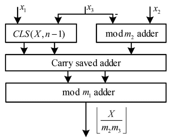 From (20), we can see that the scaling result of scaling factor can be calculated by the result from the scaler with scaling factor . Because , , the results in all channels of moduli set are .