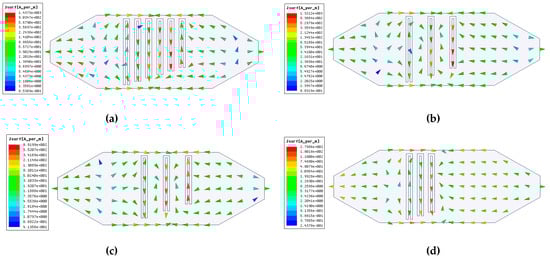 Current vector diagram of U-shaped slot resonator: (a) ID111111; (b) ID101010; (c) ID010101; (d) ID111000.