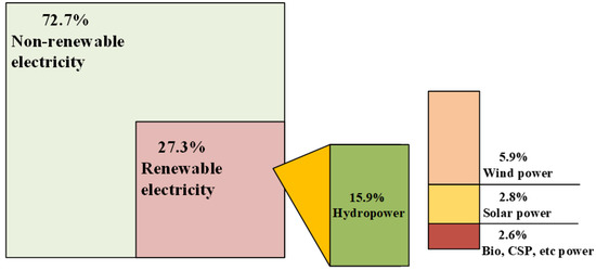 Global estimated energy share of renewable sources from 2019 [1].