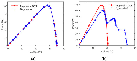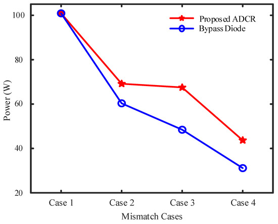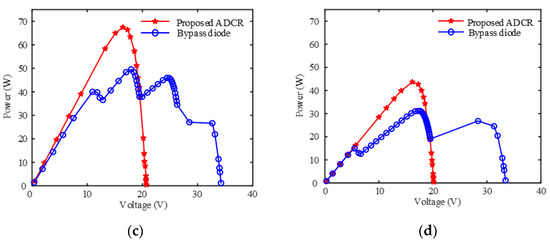 However, there are several MPPs when using the bypass diode in Figure 10b–d for mismatch cases 2–4, respectively. Hence, the ADCR significantly minimizes the computational complexity of the MPPT scheme for MPP tracking.