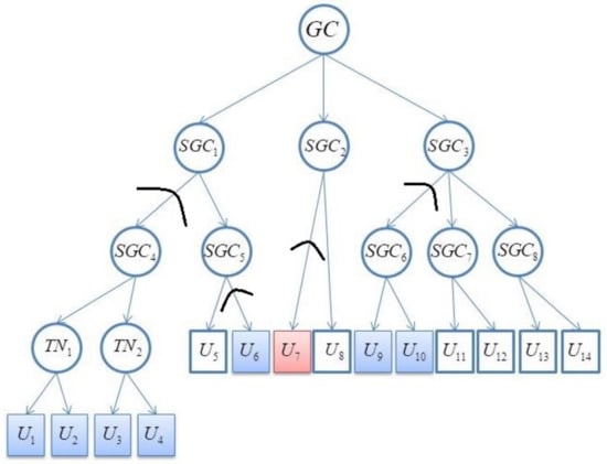 When an SGC does not respond for a specific time, its superior GC/SGC identifies it as a failure, and acts as its agent to update and distribute the key. As shown in Figure 5, when does not work, the superior takes the place of to maintain the key tree.