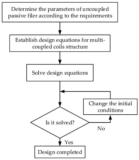 In the passive filter with multi-coupled coils, there are mutual inductances among the inductors. Therefore, in the design process, the self-inductances and mutual inductances need to be calculated and designed [5]. The basic design flow chart is shown in Figure 2.