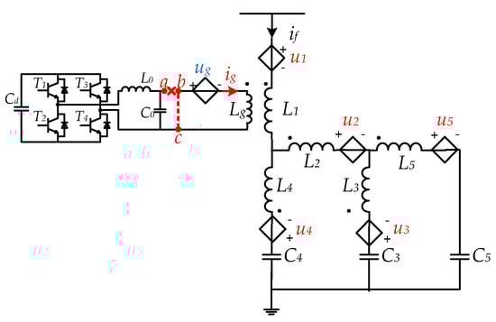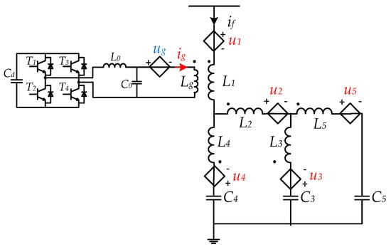 The equivalent schematic of the hybrid compensation of the proposed HAPF is shown in Figure 5, where u1 to u5 are the induced voltages controlled by the output current ig of the converter through spatial magnetic coupling and ug is the voltage source controlled by all the currents of the passive filter.