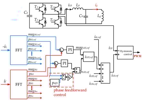 For harmonic current elimination, at the characteristic frequencies, the amplitude and phase of the output current ig are controlled to track the harmonic current.