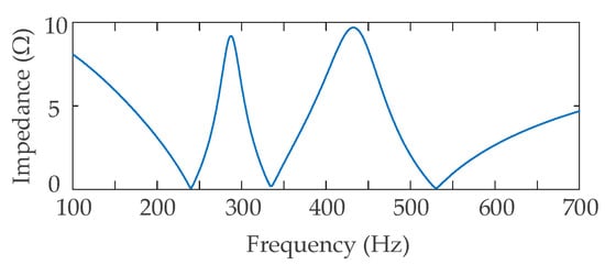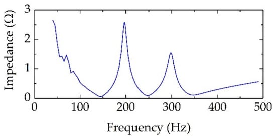 The impedance–frequency characteristic of the passive filter in the experiment is measured by voltammetry as shown in Figure 18. From Figure 18, it can be seen that the measured tuned frequencies of the passive filter are 145 Hz, 247 Hz, and 347 Hz, which slightly deviate from the frequencies of the 3rd, 5th, and 7th harmonics.