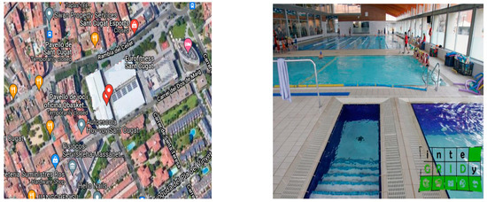 The pilot demonstration is aimed at analyzing the increase of on-site self-sufficiency (the available storage solutions and on-site PV generation) and the interaction between the grid. The pilot site, shown in Figure 2, is a swimming pool with a sports centre located at Rambla del Celler, in Sant Cugat, Barcelona, Spain. To test the BESS in a real operation scenario, a PV system with electrical storage and monitoring devices for building energy management were added to the energy system of the swimming pool. In this section, the technical specifications of these components will be described.