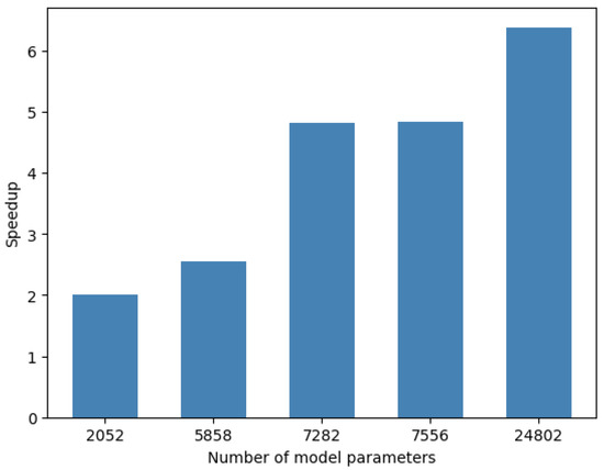Relationship between the number of model parameters and speed increase factor after deployment on the DPU.