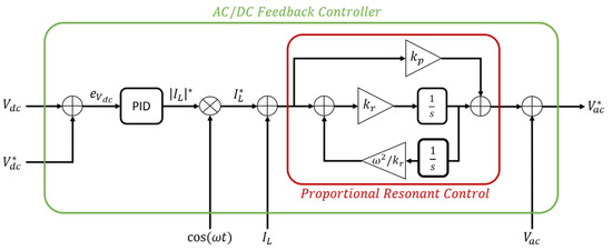 As schematically shown in Figure 3, the feedback controller handles both voltage and current control by using a cascaded control architecture. Thus, we have an external control loop that handles PFC by direct measurement of and generates a current reference such that the desired voltage is obtained.