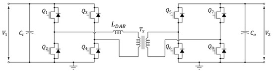 We consider a Dual Active Bridge DC/DC converter with galvanic isolation transformer, for which its circuit is shown in Figure 8.