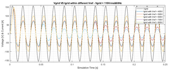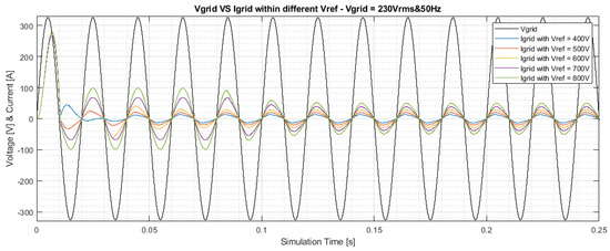 In Figure 16 and Figure 17 are shown the results obtained for a required DC voltage level of 700 V and 800 V, respectively, within variation of operating condition as reported for the previous cases.