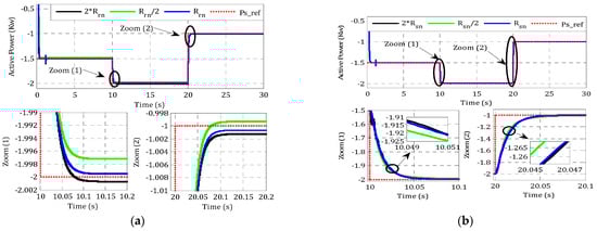 Co-simulation experimental results robustness, (a) Active Power with 2*Rn, (b) Active Power with Rn/2, (c) Active Power with Lsn/2. (d) Active Power with Lrn/2.