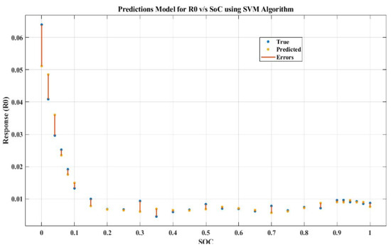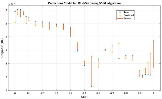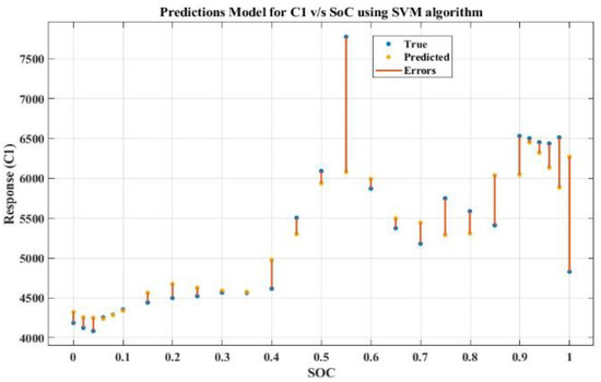 SVM is an established probabilistic type knowledge-based algorithm which includes the neural network and Markov chain technique to address the uncertain conditions which are present externally and internal electrochemical mechanisms. This algorithm in ML is used for the construction of predictive model and for forecasting the charging curve. ML is mainly used to construct accurate SOC and is used for validation under a wide range of operating conditions. Among various algorithms, SVM gives the best fit and the regression is represented in Figure 19.