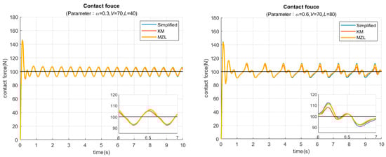 where is the amplitude of the steady contact force value and is the amplitude of the contact force by traditional passive control, as shown in Figure 8.