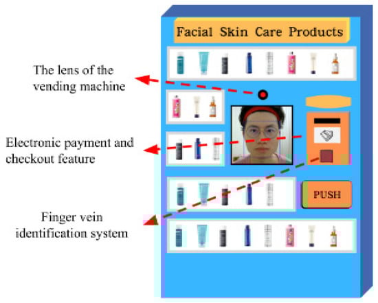 The sales’ channels of skincare products are mainly physical stores, which can be further divided into open drugstores and skincare products’ counters. Open drugstores have a leisure and free shopping environment, but the advice obtained by consulting the store staff may not be rigorous, and skincare products’ counters are prone to frequent sales’ promotion by the clerks, which reduces the clients’ willingness to purchase. Online shopping products often contain defects and counterfeit products, which are prone to the risk of harm. The recent prevalence of unmanned stores has many similarities with the above factors. The unmanned automated business model can effectively reduce labor costs, cash exchanges, and contact between cashiers and customers to maintain hygiene and safety and provide better personalized services. According to the power of artificial intelligence (AI) for cosmetics brands [], a personalized recommendation system has become a future trend, which not only stimulates more consumption power but also strengthens the relationship with consumers. In view of this, this work proposes to realize a new business model of facial skincare products with computer vision (CV) technology. Based on the concept of unmanned stores, a fast and contactless finger-vein identification system was designed to allow consumers to instantly verify their membership. This identification system can also be used as a checkout feature to save time for taking out wallets and credit cards, and thereby improves shopping efficiency by saving time in queuing. At the same time, it can also record the purchasing habits of consumers to provide more consumer-friendly commodities of preferences and needs.