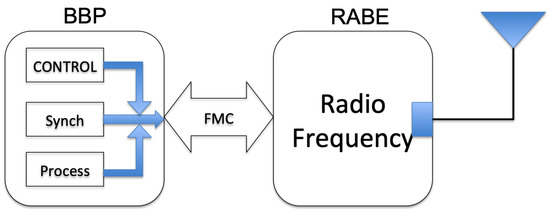 The BBP was set in a QAM modulation scheme at the testbed (as shown in Figure 11). The resulting modulation process was controlled and synchronized by the BBP to the RABE stage via the FMC connector.
