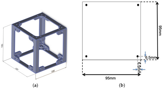 Structure and PCB measurements in mm. (a) CubeSat structure. (b) PCB size.