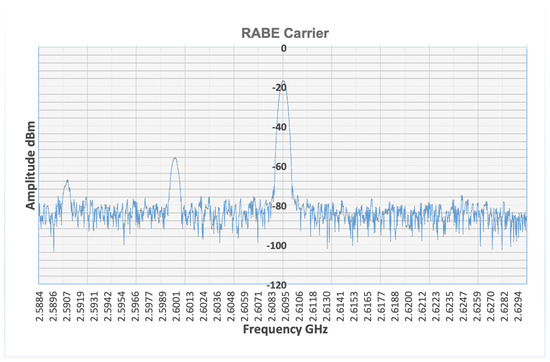In Figure 12, the spectrum generated by the RABE is shown, which was taken directly from the RF output by the N9030A analyzer, all this at a frequency centered at 2.300 GHz, in which it is allowed by the Mexican government for experimental satellite links according to the frequency allocation table [18].
