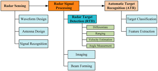 Although deep learning technology has demonstrated an exciting trend over the past few years, its full potential for radar application has not yet been explored. In ref. [9], researchers grouped the radar application problems that can be solved by deep learning-based methods into three general categories: radar sensing, radar signal processing, and radar automatic target recognition (ATR), respectively, which are listed in Figure 1. Radar sensing and radar signal processing are the necessary prerequisites and procedures for radar ATR.