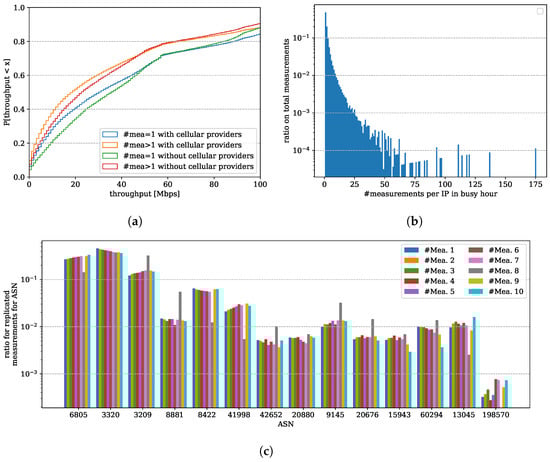 | [13] | Evaluation of public domain Internet measurements for Canada’s access networks by comparison speed tests from MLab, Akamai, and Ookla. | The MLab and Akamai datasets return similar results, whereas the Ookla speed test returns typically greater results. | We evaluate German ISPs with a procedure to extract representative data that confines the evaluation to busy hours, ISPs, and sites as well as locations of the measurement servers. |