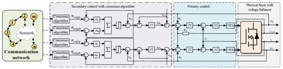 From the influence results of the line resistance and load resistance on the positive and negative bus currents in Section 2, the voltage and current balance of the bipolar DC distribution network needed further control system influence. In order to solve this problem, this paper adopts the distributed consensus control combining primary control and secondary control.