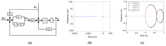 According to Equation (14), the primary control dynamic structure diagram of the control system can be obtained (Figure 8a). The reference voltage Δup′ and the load current Δip served as the inputs. Meanwhile, the positive DC bus voltage was the output of the primary control system. Then, the transfer function of the primary control can be expressed as follows: